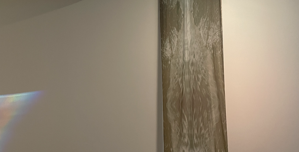 Toutefois, l’œuvre Wanaawna de Carolina Caycedo a moins retenu moins mon attention quant à elle. Bien qu’elle s’émerge du lot grâce à sa taille, la singularité de son motif et de l’effet de symétrie dans son montage de photographie, mais cette impression sur toile me semble pourtant très familière, c’est-à-dire qu’il s’agit plutôt d’un type d’œuvre que des artistes ont déjà présenté. D’ailleurs, on le retrouve également dans la deuxième visite d’exposition, Futurs ruisselants.