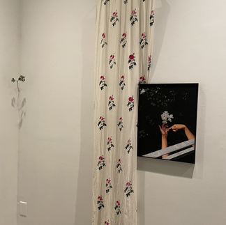 L’œuvre Of Roses [how to embody the layers of time] de l’artiste Eve Tagny est ma préférée de l’exposition. Cette œuvre est un ensemble d’installations et d’une projection vidéo dans laquelle on abordait le sujet de la « reine des fleurs », c’est-à-dire la rose. L’histoire que l’artiste racontait sur cette fleur était très intéressant à écouter, surtout le sujet de la domestication et du commercialisation de la rose.