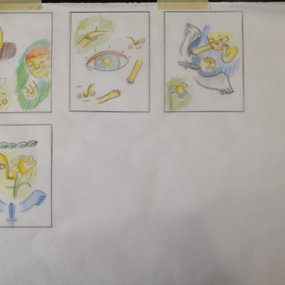 Composition et cases. Narcisse, Dessin, 33 x 51 cm, carton, velum, encre, graphite, crayon de couleurs.